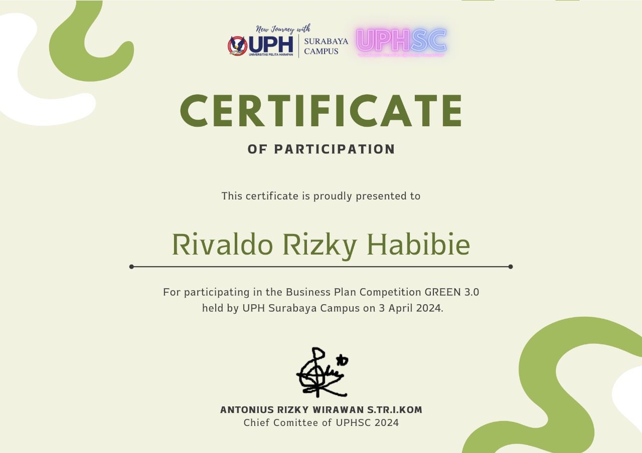 Sertifikat sebagai peserta Bussines Plan Competition 2024.