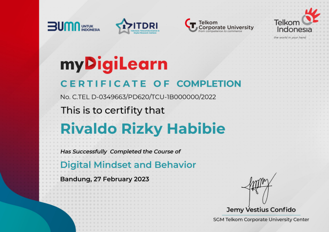 Sertifikat sebagai peserta Digital-up yang diadakan oleh Telkom Indonesia 2024.