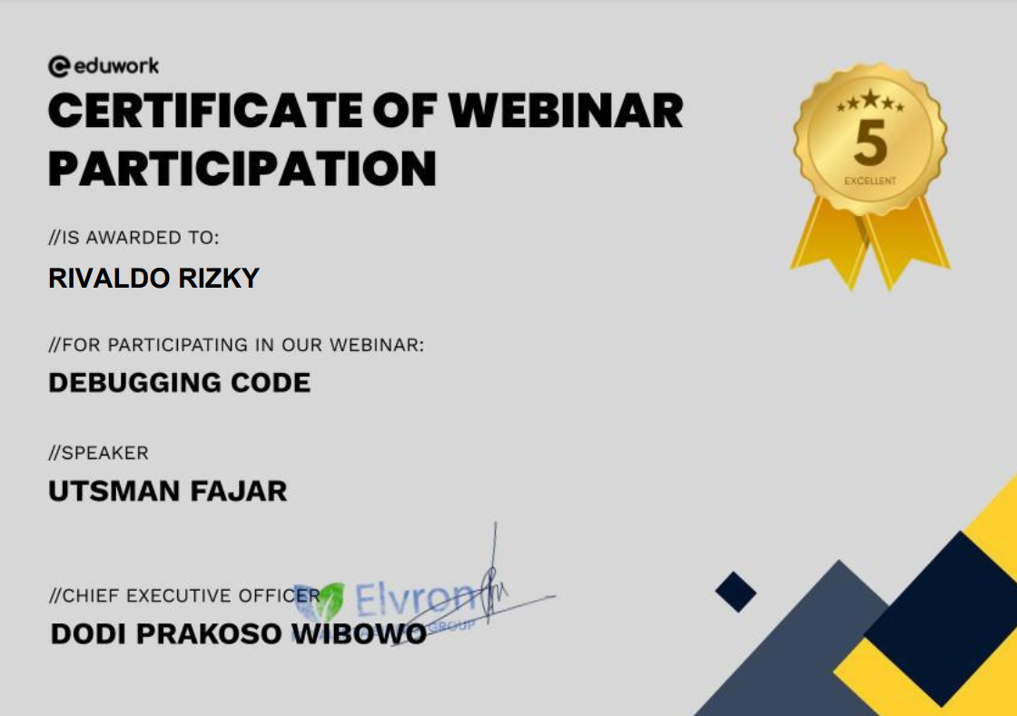 Sertifikat sebagai peserta webinar yang diadakan oleh Eduwork 2024.