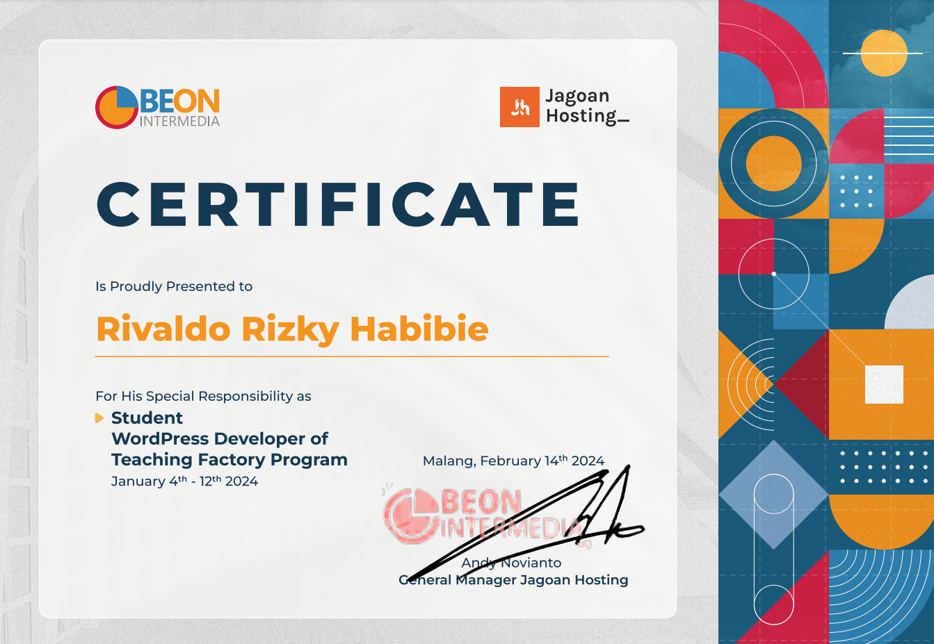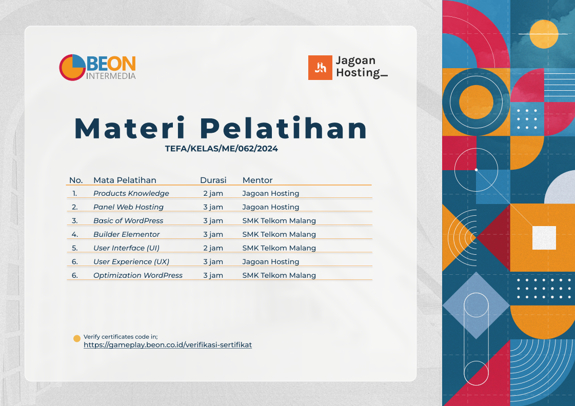 Sertifikat Tech Class Jagoan Hosting 2024.