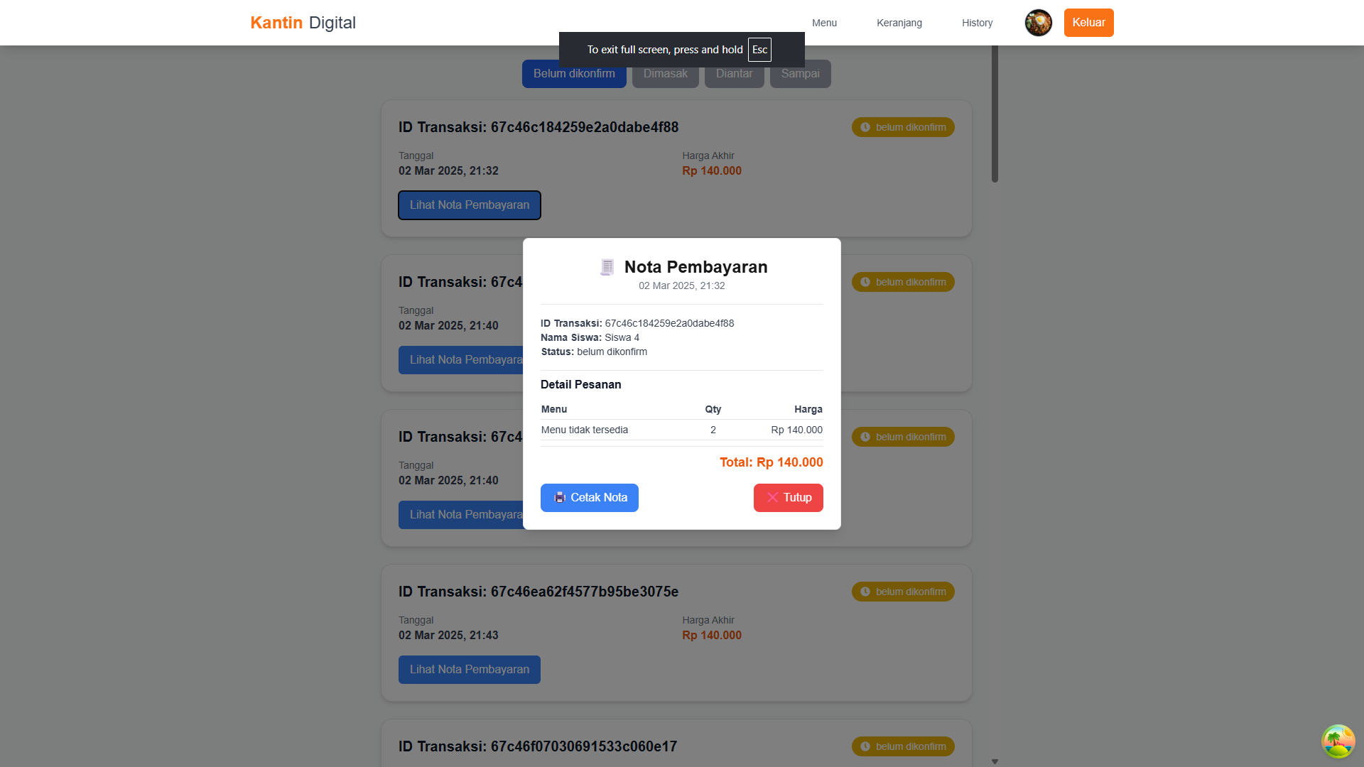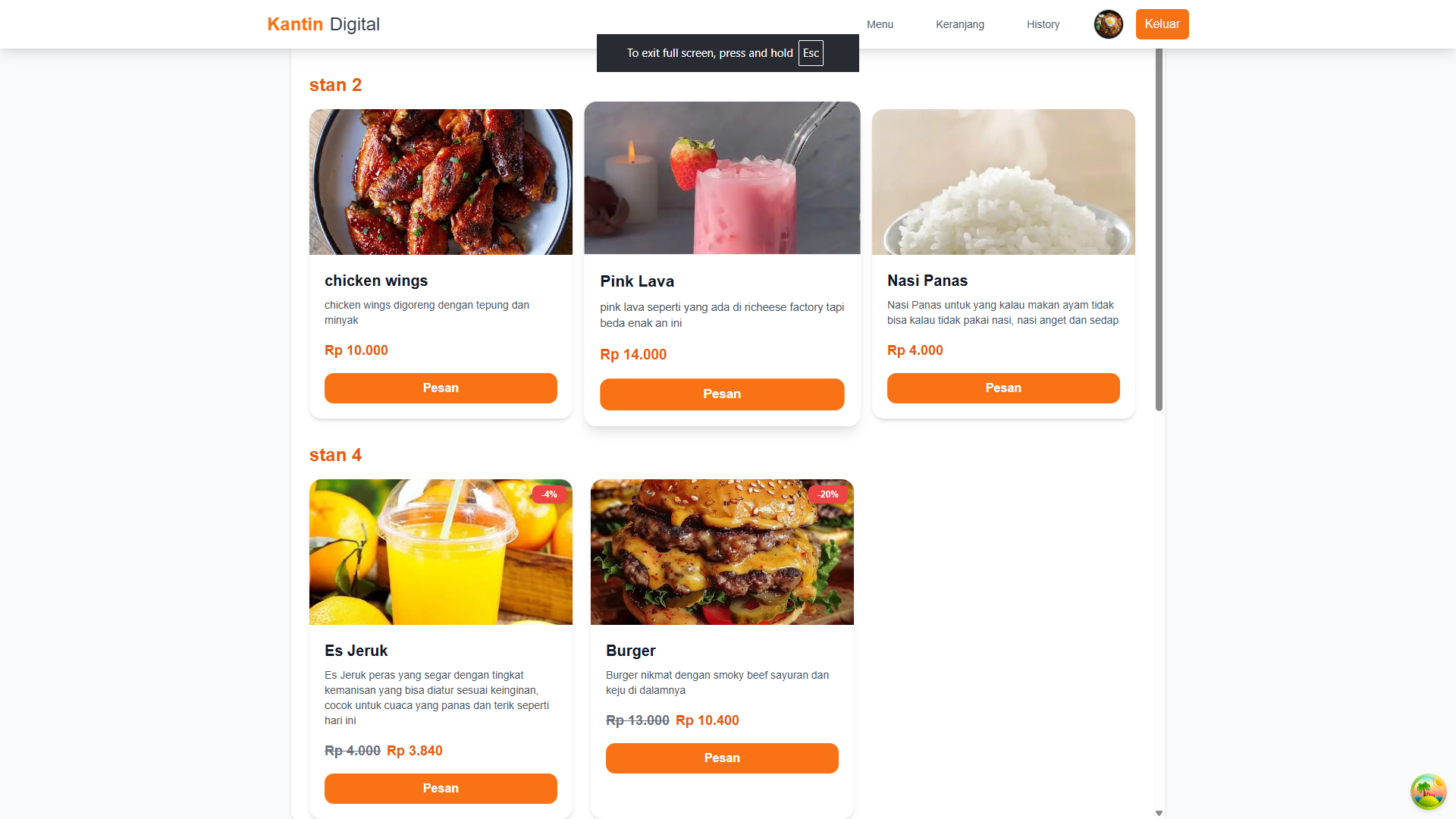 UKK Canteen User Dashboard